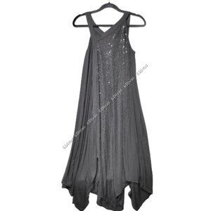 BLACK flowing asymmetrical tunic sequin dress - size S size M