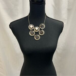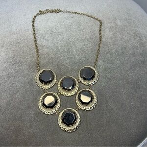 BLACK good-tone hammered round circular bib necklace