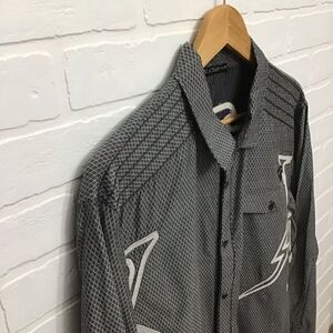 Item keywords: BLACKARV shirt, men’s designer shirt, XXL button down, cotton grey shirt, long sleeve designer shirt, BLACKARV fashion top, logo back shirt, casual dress shirt, modern men’s shirt, men’s fashion XXL, pre-owned BLACKARV shirt Blackarv Darkness industries quality 100% cotton button down shirt. Amazing details that catches eyes!