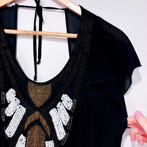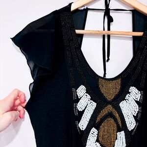 BLANCO GHIACCO Black jumpsuit with white, black and gold beads to tie