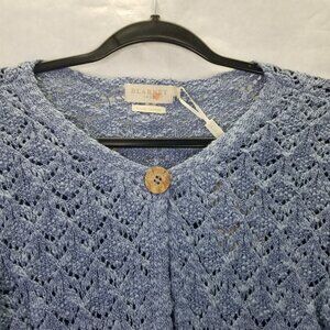 BLARNEY Woolen Mill Open Front Cardigan Women M Cotton Linen Denim Blue Knit NEW
