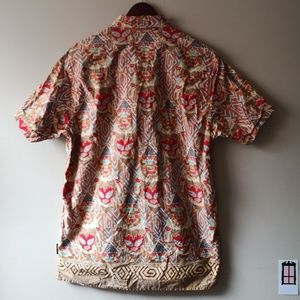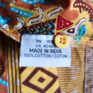 Pictures doesn't do this vibrant shirt justice, 100% cotton and made in India, this unique men's shirt has cuffed sleeves and a fantastic graphic design!