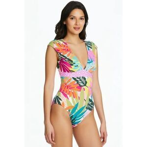 BLEU by Rod Beattie Wild at Heart MIO Floral Short Sleeve One Piece Swimsuit Sz 14