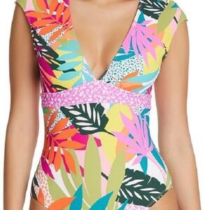 BLEU by Rod Beattie Wild at Heart MIO Floral Short Sleeve One Piece Swimsuit 14