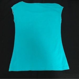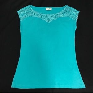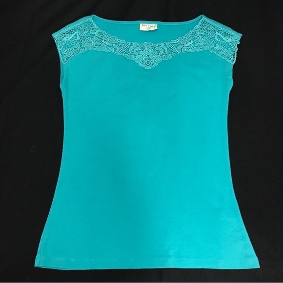 BLEU gray Sleeveless Crochet Decal Cotton Teal Shirt Small