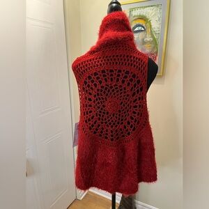 🆕BLMLQ red crochet vest w/back floral design🧶❣️