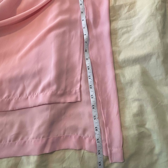 BLOUSE, BLACK TRIM, COLOUR: POWDER PINK, SIZE 24, POLYESTER, BUTTON FRONT, CAP SLEEVES, HI-LOW HEM, BLACK COLLAR, SIDE SLITS, DARTS, MICHEL STUDIO for ADDITION ELLE, IN ORIGINAL BAG, TAG ON, NEVER WORN