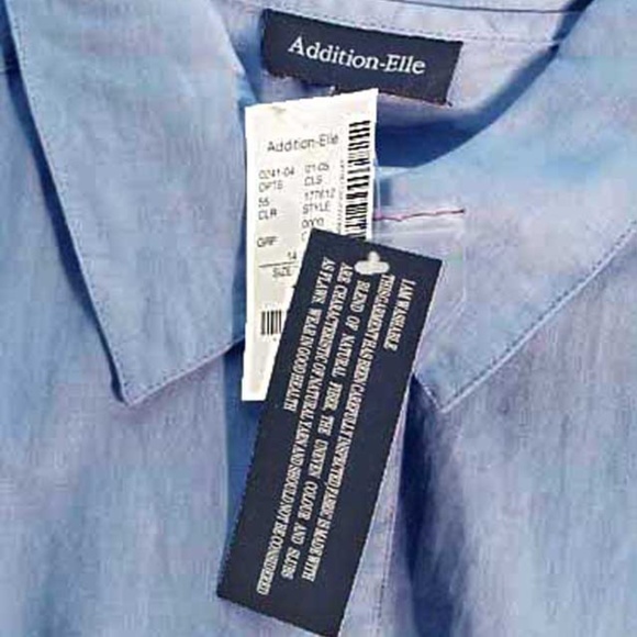 BLOUSE, PURE LINEN, TUNIC LENGTH, MISSES 14, MEDIUM BLUE, WASHABLE, ONE POCKET, NEVER WORN, NO DAMAGE, TAGS ON