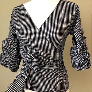 RUFFLE BLOUSE WRAP AROUND GINGNAM PATTERN SIZE S