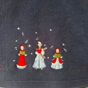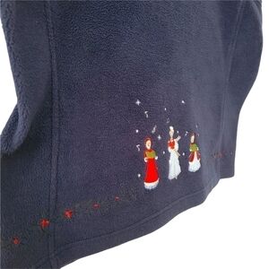 BLUE Fleece Zip Vest Embroidered Carolers Holly Berry Size L Northern Reflection