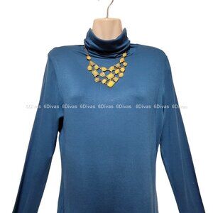 BLUE Long Sleeve Lightweight Stretchy Comfy Turtleneck Tunic- Size L/G