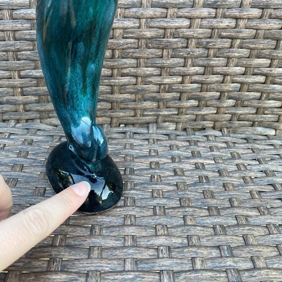 BLUE Mountain Pottery Blue Green Glaze Mini Vase Asymmetrical Style Felt Bottom