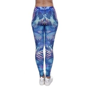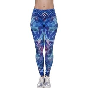 BLUE Multi Color Tropical Palm Print Full Length Leggings Size 0-10 NWT