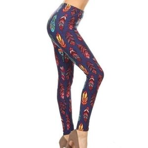 BLUE & Purple Multi Color Feather Print Full Length Leggings Size 12 NWT