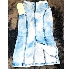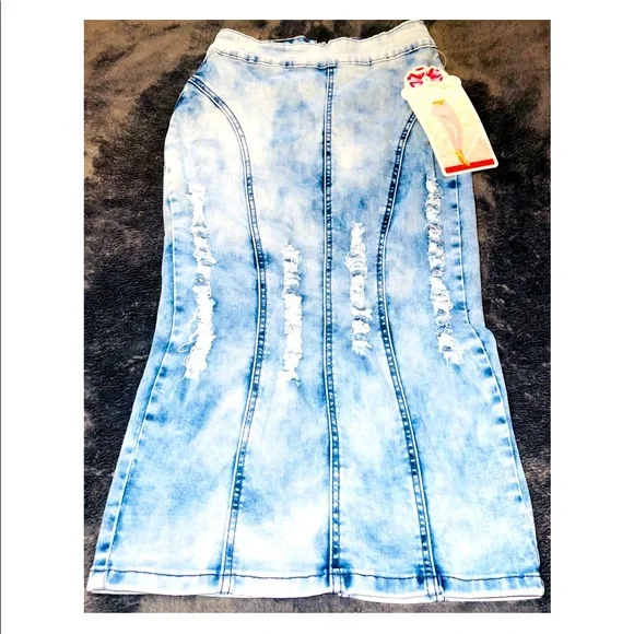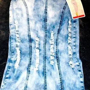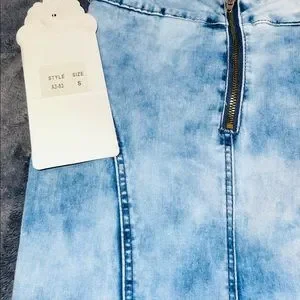 Brand New High Waisted Mixed Colored Ripped Jean Skirt. Size small, but fit like an extra small. The material is very comfortable and soft.