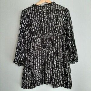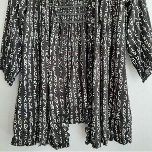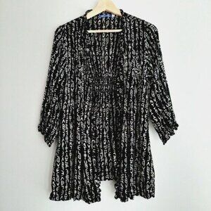 BLUE SKY Love & Gratitude Fair Trade Open Front Fabric Cardigan B&W Sz XS