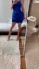 BLUE SLIP DRESS SIDE RUCHING STRETCH ADJUSTABLE STRAPS COWL NECK SATINY