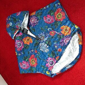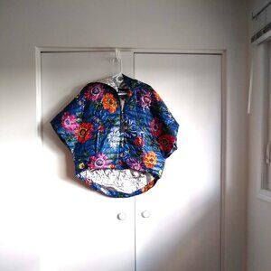 BLUE cropped hi-low floral down poncho with hood NWT #1 πHOST PICK π