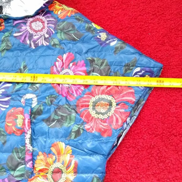 BLUE cropped hi-low floral down poncho with hood NWT #2