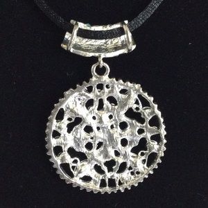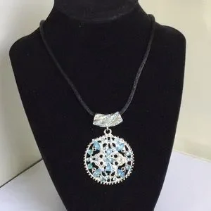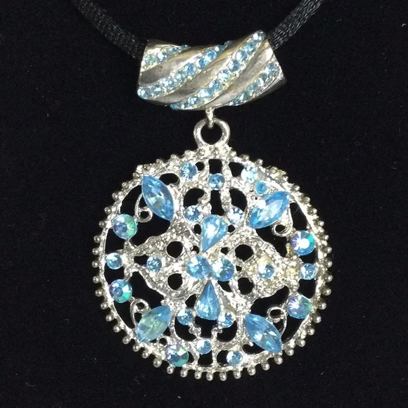 - sparkly blue rhinestones set in silver tone metal pendant base and bail
