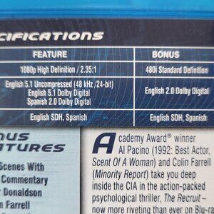 The Recruit BLU-RAY a taut tense thriller, Staring AL PACINO COLIN FARRELL a must see run time approx 115 minutes rated PG-13