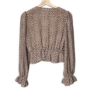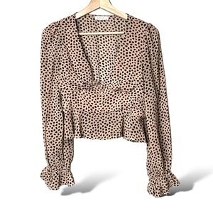 BLUSH BJ Sheer Animal Print Crop Top Long Sleeve Ruffle Cuff US Sz S