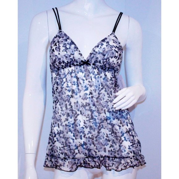BLUSH LINGERIE Camisole TOP Shirt SHEER Rebel Chic CAMIDOLL Floral FRILL ( M )