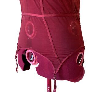 BLUSH - RED Lingerie Cami semi-sheer mesh with garter straps - large