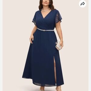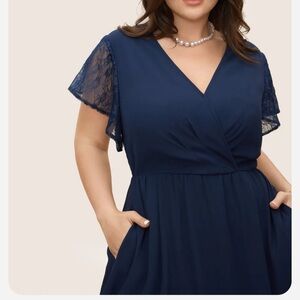BLoomChic Plus Size 3XL Overlap Collar Crochet Lace Mesh Dress us22-24