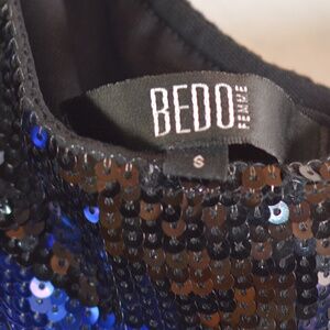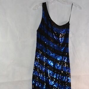 BLue Black Striped Sequin One Sholder Mini Dress Sz S BEDO