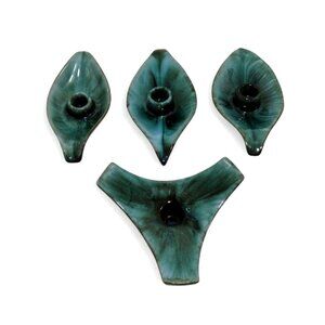 BMP Blue Mountain Pottery Candle Holders Leaf Shape and Triangle Canada Vintage