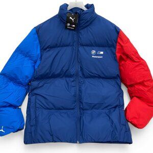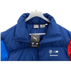 BMW Puma M Sport Racing Red Blue Winter Puffer Bomber Ski Jacket Men's L NEW NWT. Mid-weight puffer. Inside pouch pockets.