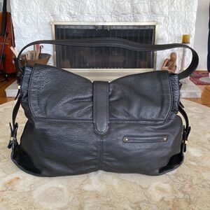 B. Makowsky Extra Large Black Leather Hobo Shoulder Bag