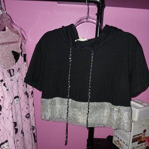 Brand New, Never worn/once in house. Size Medium/Large in Women's. Made fm quality cotton blend material with beautiful chain detailing to the strings AND the Cropped Sweater is half made up Gorgeous rhinestones!! 🥰 (New as the sweater never worn, and pants were worn once in house, and washed by hand).