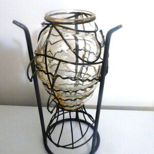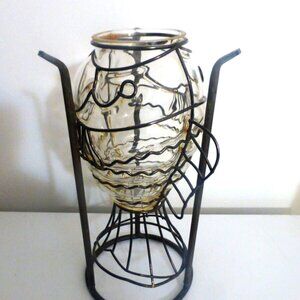 BNF - 10" Metal Caged GLASS FISH Vase or Candle Holder Fishing Nautical