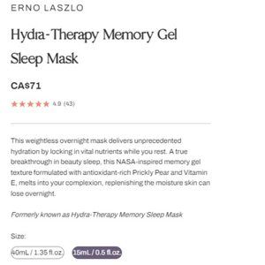 This weightless overnight mask delivers unprecedented hydration by locking in vital nutrients while you rest. A true breakthrough in beauty sleep, this NASA-inspired memory gel texture formulated with antioxidant-rich Prickly Pear and Vitamin E, melts into your complexion, replenishing the moisture skin can lose overnight.