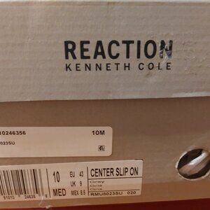 "Leather/ Man made Upper". Beautiful grey slip on shoe. Soft to the touch. No flaws.