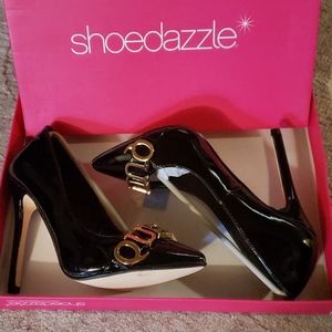 Brand new in there original box patent leather high heeled/stilleto/pumps, If your someone that like to make a statement these are the stilletos for you!! Walk into a room n let everyone know your a true QUEEN with these beautiful black n gold pumps they'll have all the heads turning men cuz ur gonna look stunning n women cuz there gonna love them n wanna know where they can get a pair ( which they can't shoedazzle no longer sells these bad girls ) These are so versatile as well they van be worn to the office or on a girls or date night or even with a pair of hip hugging skinny jeans, these are a sz 6 n are true to sz, open to offers plus check out all my other beautiful shoes cuz there all buy one get one half