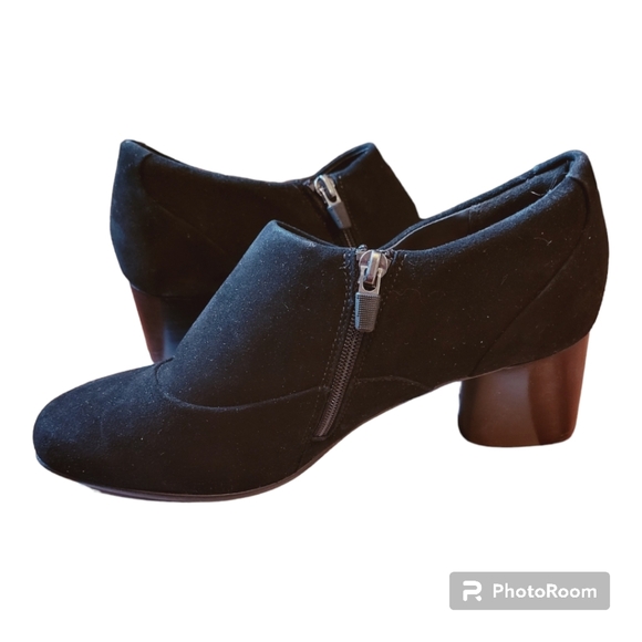 BNIB Unstuctured by Clarks Un Cosmo Zip Black Suede Pump Ankle Booties