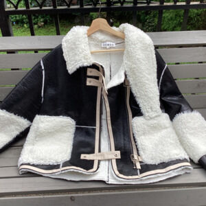 BNNT KATE HEWKO Colour Block faux Shearling Aviator jacket. Large