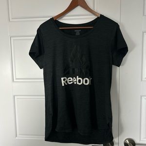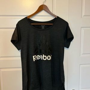 Grey/black in color - smooth material to keep you dry during workouts that has some stretch