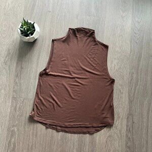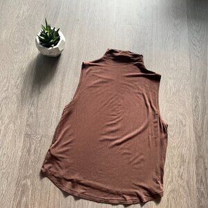 BNWOT Babaton Modular (from Aritzia) Chocolate Brown Mock-Neck Sleeveles Blouse