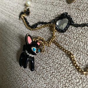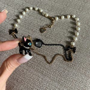 BNWOT Betsey Johnson Vintage Rose Garden Black Cat Layered Pearl Charm Necklace