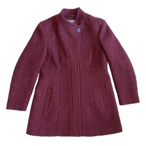 Brand new without tags Bouclé Standing Collar Coat in burgundy. Size XS petite. In excellent condition, as it's never been worn. I bought this a few years ago, but it was a little too big. Fit is big for an XSP. I normally take an XS-S. ***Note: Colour is most like first picture (deep burgundy).***