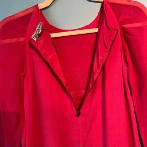 Bodice lined, sheer sleeves