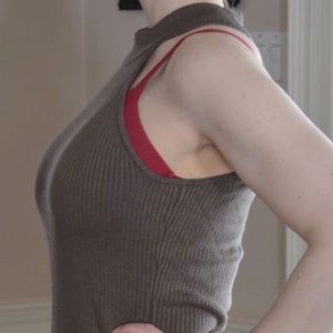 BNWOT Guess Shea ribbed mockneck sleeveless sweater Size M (dark olive)
