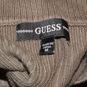 Brand new without tags - tried on but never worn Guess ‘Shea‘ ribbed mockneck sleeveless sweater. Original listing described colour as ‘dark green’ - in real life colour is closer to dark olive (see pictures). Size M. 83% rayon/17% nylon (Note: Red straps are not part of the sweater!)