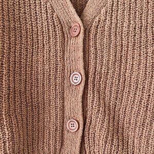 Button-up long sleeve cardigan in a textured rib medium weight knit