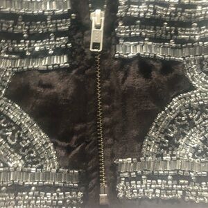 Excellent quality and condition. Lovely silver & Black beaded Bandeau.. Wear it with trousers or jeans or my Black BCBG blazer.. fun , sexy and cool. Zippered