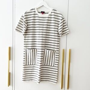 Brand new without tags. Size that fits over size. Absolutely fabulous. Gray and white. Pockets at front. Classic and crisp. Heavier cotton mix So comfortable. Effortless style. Perfect for travel!